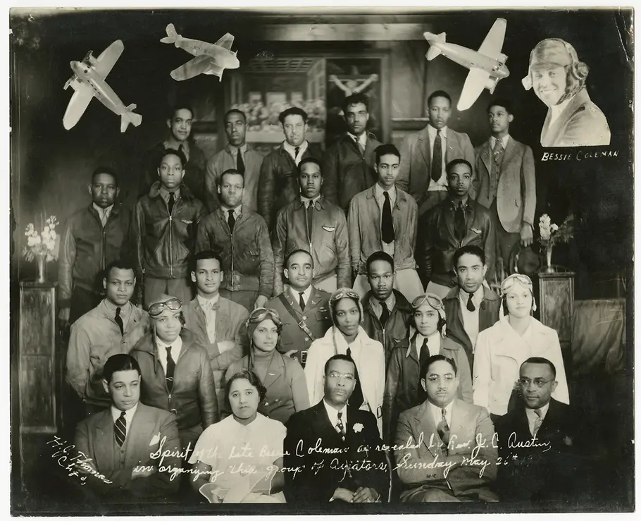 The Robbins Airfield Era: These photos show him with the “Challengers Air Pilots Association.” You’ll often see him with Janet Bragg or Willa Brown. In these, he’s usually the “professor” figure—calm, focused, and standing near the tail or engine of a biplane.